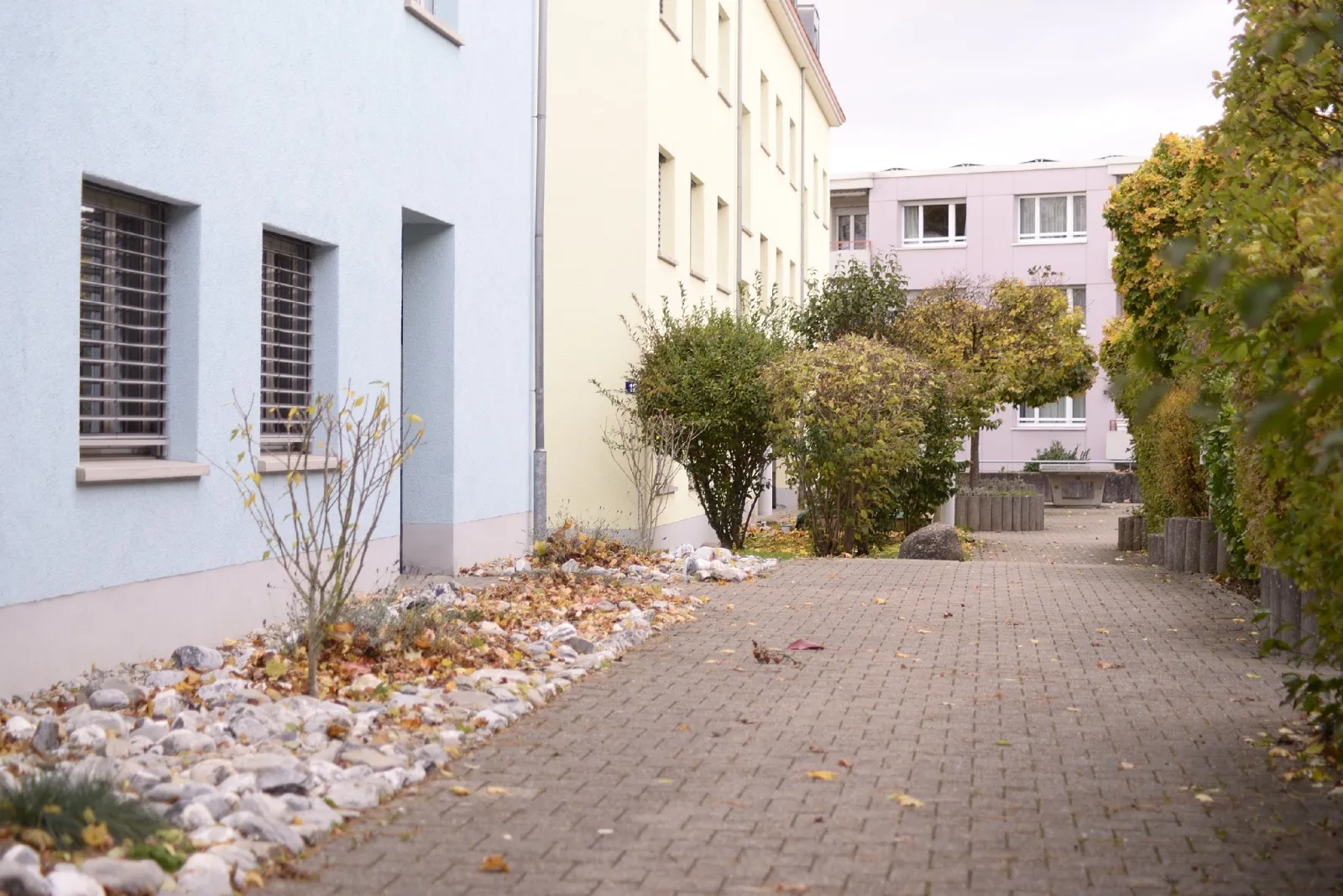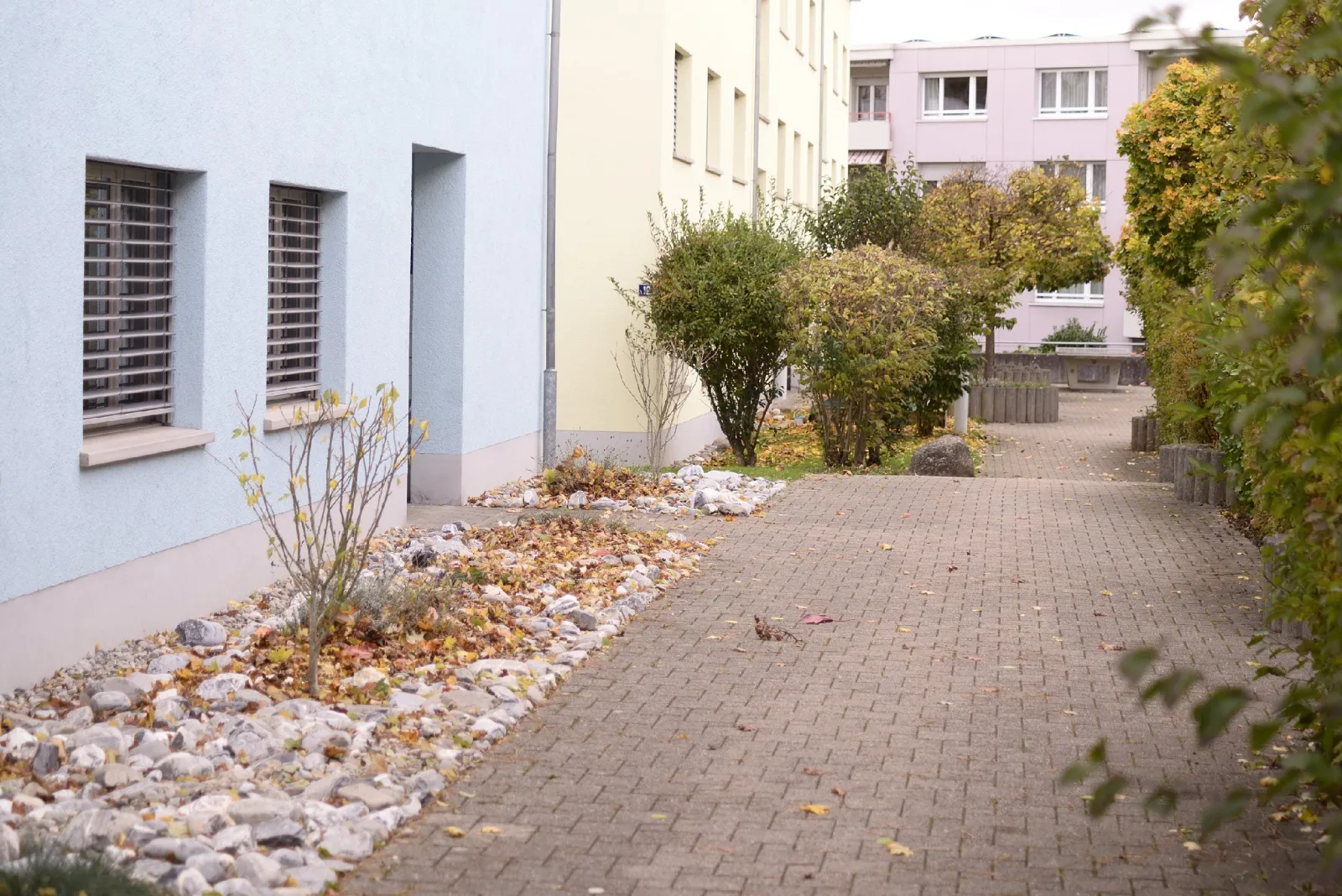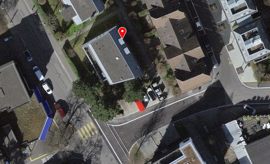 Parkplätze vor dem Haus, weisse Zone in unmittelbarer Nähe.